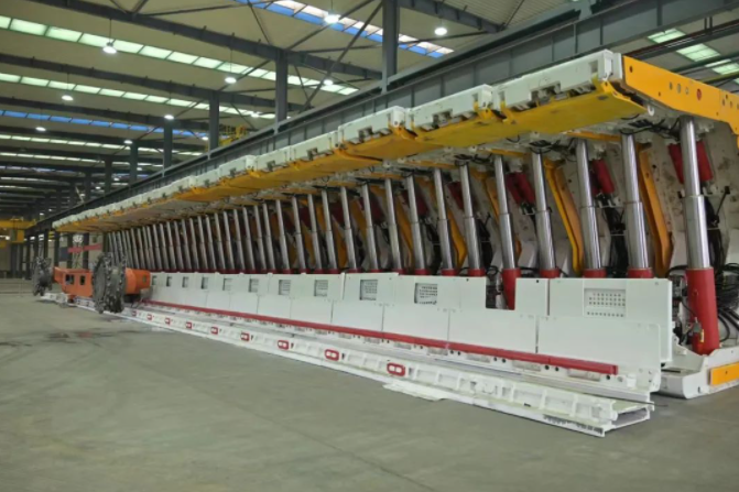 “大家一定要充分發揮利用好現有資源和團隊優勢,在解決‘卡脖子’技術難題方面取得更多更大突破。”中盤重工公司領導班子到基層調查研究時直面問題所在。中盤重工公司始終秉承“讓復雜地質的煤礦更安全更高效開采”的企業使命,在大傾角、急傾斜液壓支架和刮板輸送機核心技術研發方面持續發力,研制的ZY6800/21/45J型急傾斜液壓支架,中心距1.75米,最大采高4.2米,是急傾斜中厚煤層機械化開采技術的新突破,2023年12月5日實施了三機聯調聯試,獲得礦方高度認可。液壓支架突破了在最大傾角52度、最大采高4.2米的高效防倒防滑和安全防護,技術達到國內先進水平。與該支架配套的SGZ800系列刮板輸送機,是公司首臺套800系列刮板輸送機,應用于急傾斜采面尚屬首例,輸送機采用無鏈、無驅動結構形式,應用傾斜工作面的自然條件,實現煤的自溜運輸。