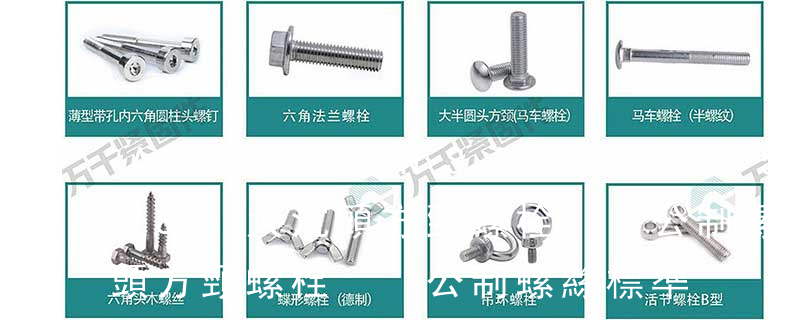 (二)、馬車螺絲/圓頭方頸螺栓(CarriageBolts):ANSI/ASMEB18.5;DIN603;ISO8677;GB12;GB14(三)、內六角螺栓(Hexagonsocket-headcapscrews):DIN912;GB70;ISO4762;ANSI/ASMEB18.3(四)、六角木螺絲(HexagonHeadLagScrews):ANSI/ASMEB