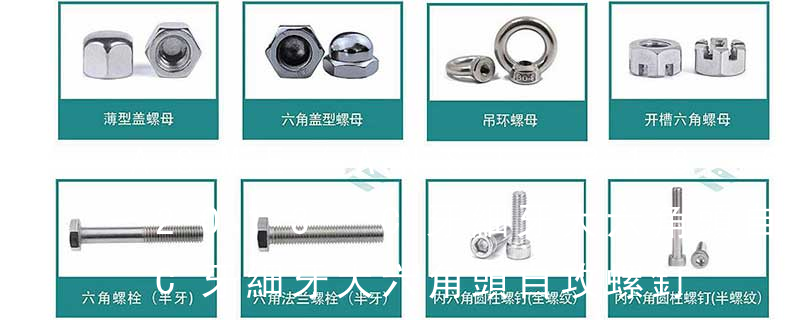 另像ANSI、ASME等的螺紋是以英寸為單位的稱為美標螺紋。除了公制螺紋和美制螺紋外還有一種BSW—英制標準,其螺紋也是以英寸為單位,俗稱惠氏螺紋。公制螺紋是以MM(毫米)為單位,它的牙尖角為60度。美制螺紋和英制螺紋都是以 大六角螺栓,顧名思義為頭部為六角型的外螺紋扣件,設計為使用扳手轉動。 依照ASME B18.2.1標準,六角頭螺釘(Hex cap screw)較一般的大六角螺栓(Hex bolt)的頭高和桿長公差小,因此ASME B18.2.1六角螺釘適合安裝在所有