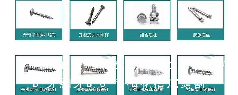 (鐵板牙自攻螺絲) B-2: Plastic Tapping Screw. (塑膠用,自攻螺絲) C: Wooden Screw : 木工螺絲 D: Drywall Screw :水泥墻螺絲 E: Self Drilling Screws鉆尾螺絲(不銹鋼鉆尾螺絲,復(fù)合材料鉆尾螺絲) F:膨脹螺絲,四片膨脹螺絲又